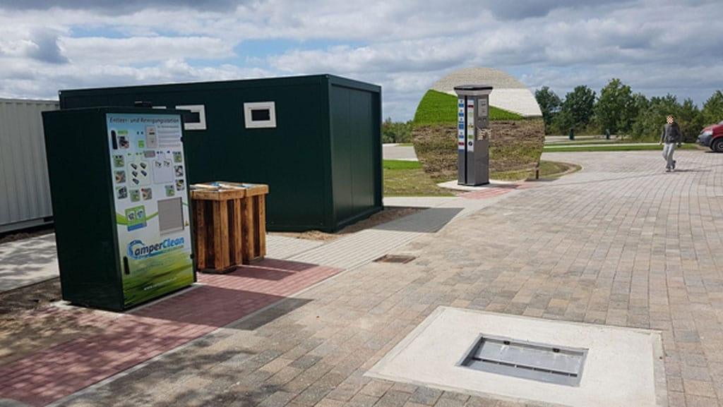 L’élimination souvent problématique des eaux noires et des eaux grises peut être résolue de manière innovante grâce au système complet spécial de CamperClean. Autour de la station de nettoyage automatique, vous pouvez également réaliser un puits d’eau grise pour les camping-cars et les caravanes sur votre emplacement. Le puits d’eaux usées peut être nettoyé automatiquement par un système de surveillance électronique. Le système est complété par une prise d’eau fraîche séparée pour des raisons d’hygiène.